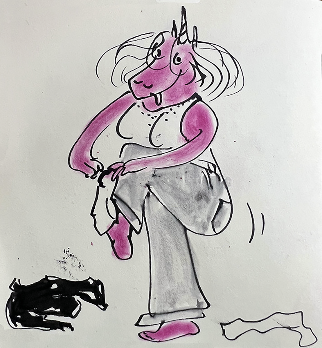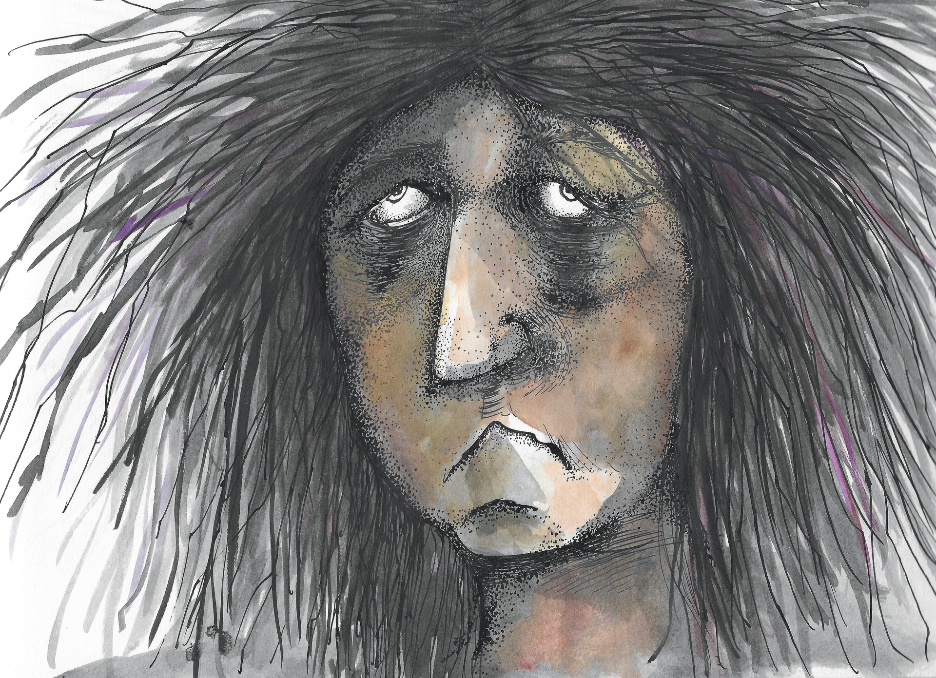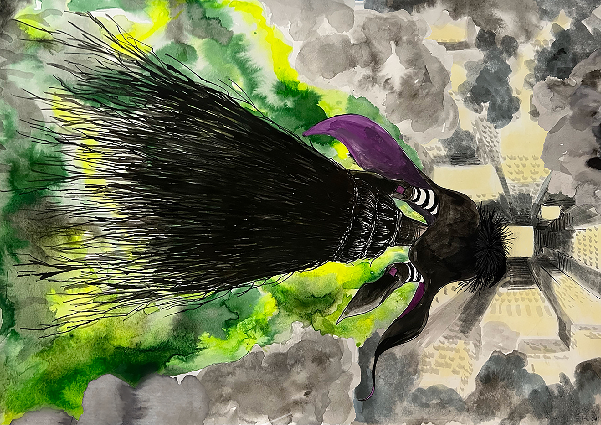 Een duik van Karma de heks. Inkt en digitaal bewerkt A3