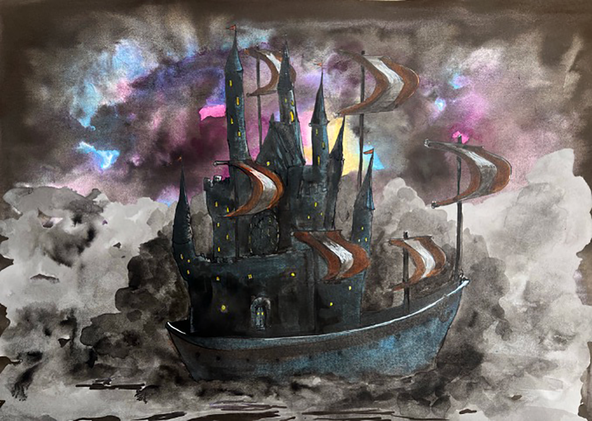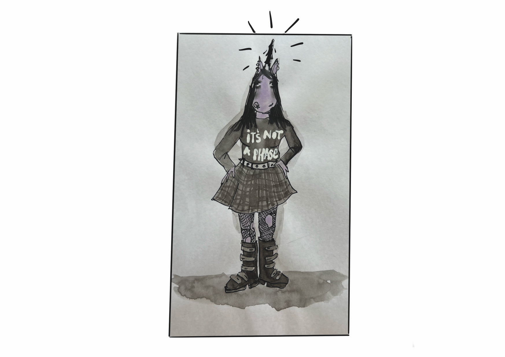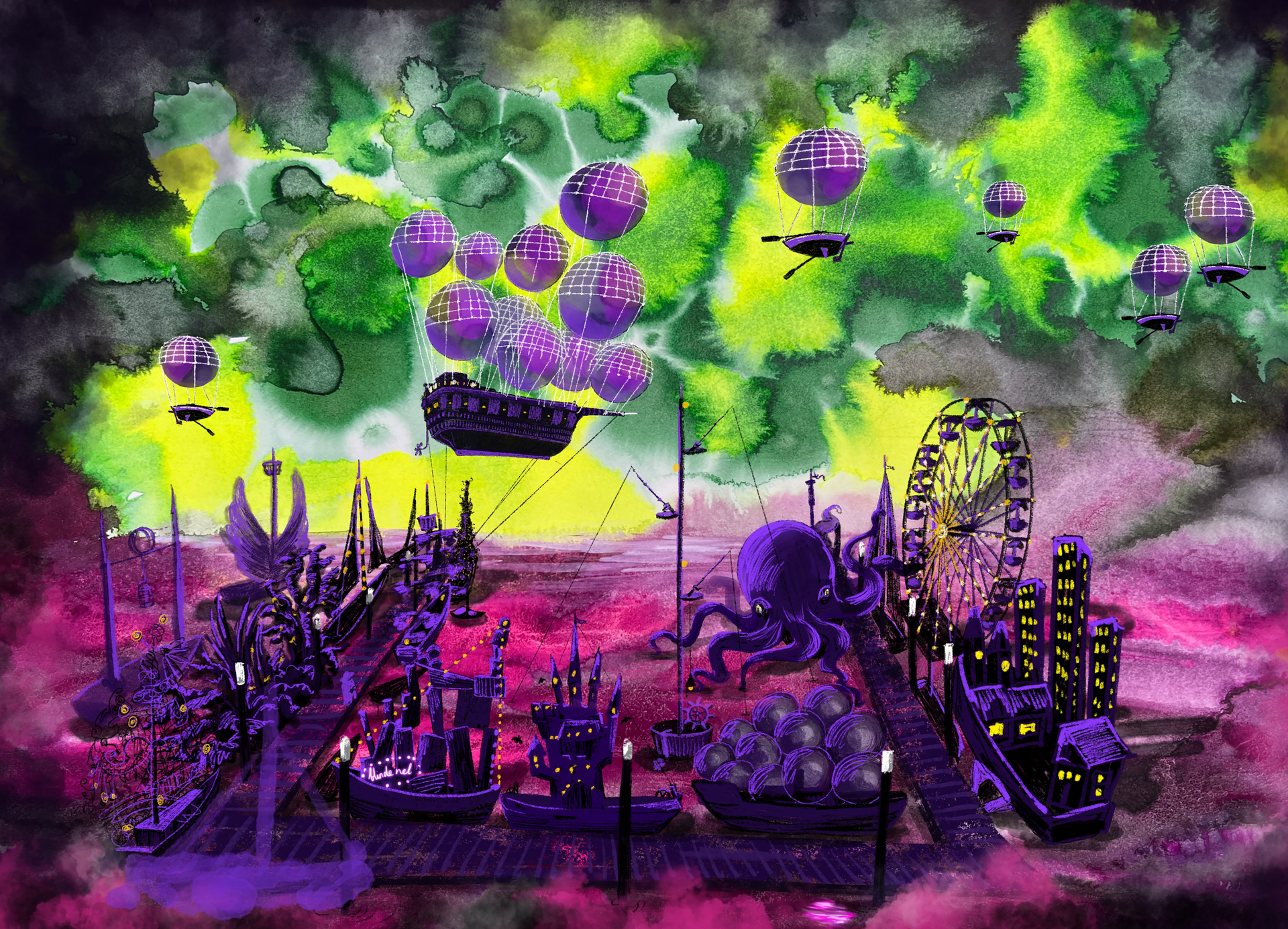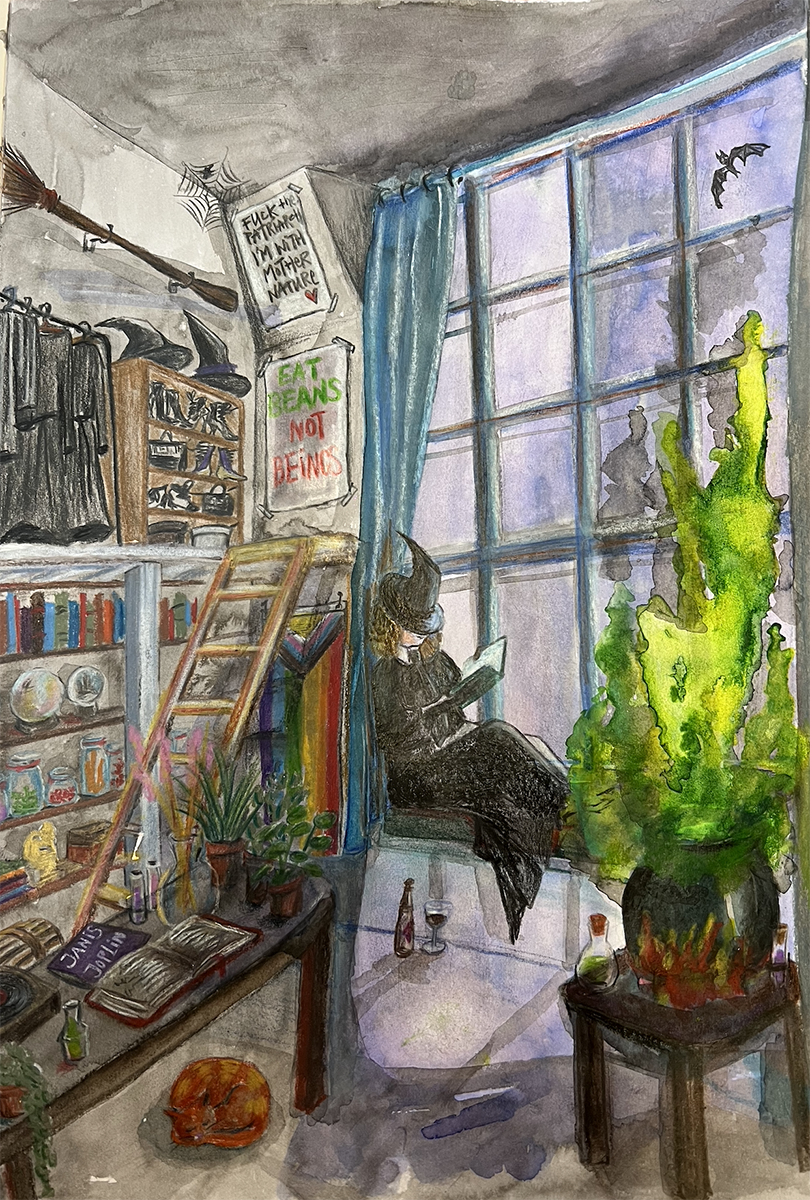 Een duik van Karma de heks. Inkt en digitaal bewerkt A3